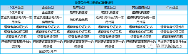 2、微信公眾號創(chuàng)建前的準備以下是申請微信公眾平臺所需的資料詳細列表,大家可以按照自己需求提前準備