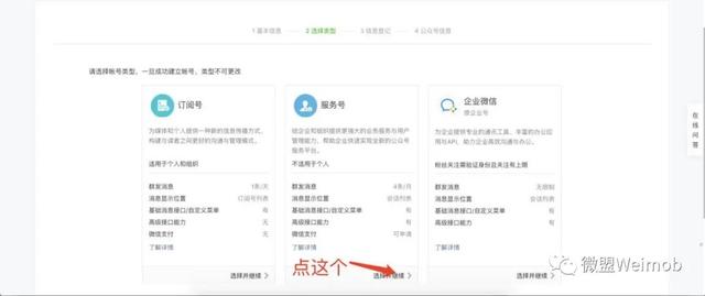 選擇賬號類型,類型選擇服務(wù)號