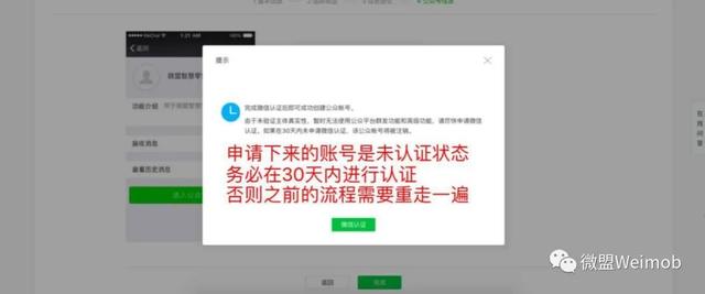 系統(tǒng)認證操作提醒及注意事項 到這一步服務(wù)號的申請就完成了,接著是服務(wù)號的認證